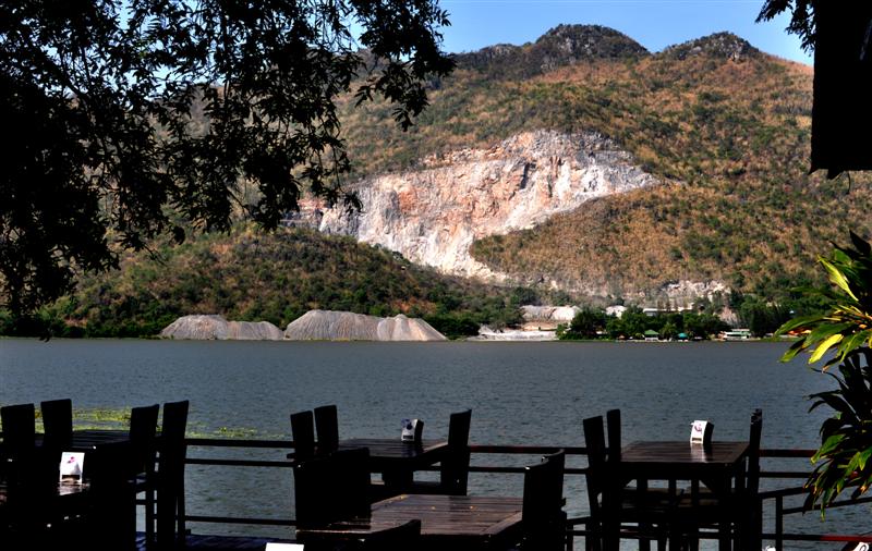 หน้าผาตรงข้ามรีสอร์ท เกิดจาการระเบิดหินเอาไปขาย