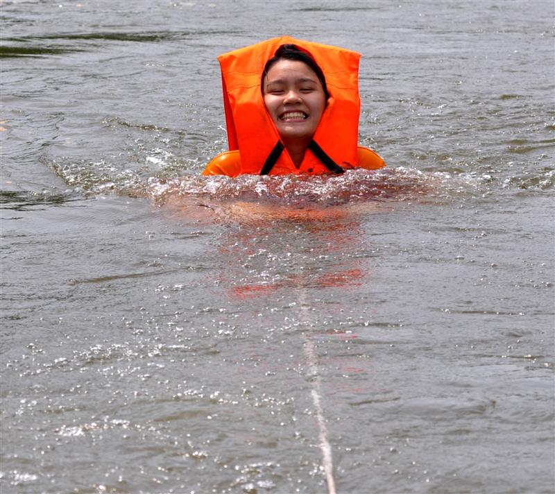 ขากลับลูกบอกอากาศร้อน ก็เลยลงน้ำและลากกลับมา
