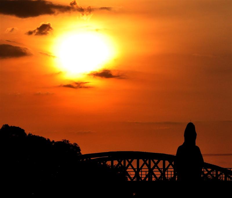 สะพานข้ามแม่น้ำแคว กับรูปปั้นเจ้าแม่กวนอิม
