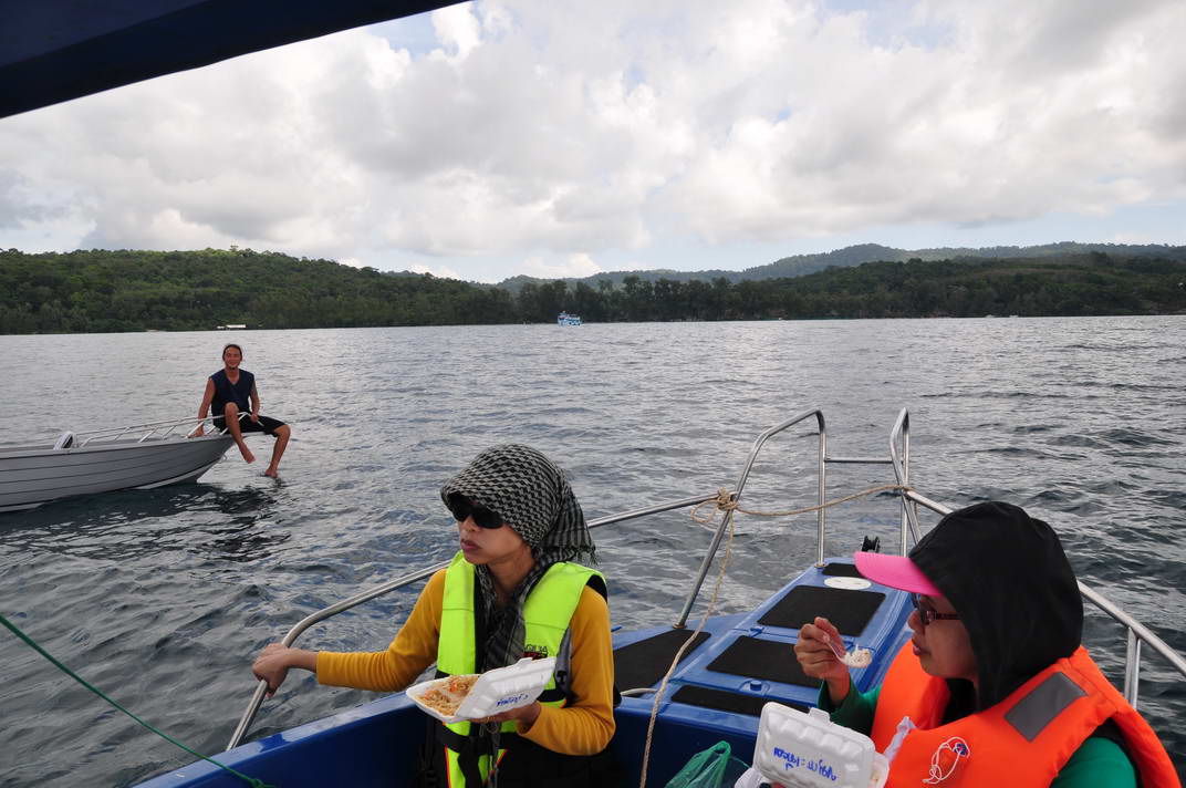 ถึงเกาะกูดแล้วระหว่างจอดรอ กลุ่มหลัง กับหาทางเข้าน้าตกคลองเจ้าครับ ทานข้าวระหว่างรอไปพลางๆ