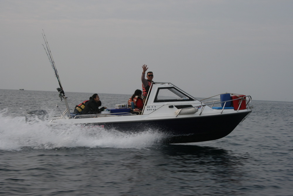 หลังจากตกลงและทำสัญญาในการต่อเรือแล้ว ผมก็ทำการหาเครื่องครับซึ่งตามสเป็คที่ตั้งไว้ ต้องเครื่องโฟร์เท่านั้น แต่เมื่อไปสืบราคาของใหม่ก็กลับแทบไม่ทันครับแพงมากสำหรับผม เครื่องมือสองหรือเก่าญี่ปุ่นจึงเป็นอืกหนึ่งตัวเลือกที่ดีสำหรับผมเพราะราคาพอจ่ายได้ แต่ก็นะเครื่องก็บอกอยู่ว่ามือสองผ่านการใช้งานมาแล้วมีหลายสภาพมาก ด้วยความที่เราก็ไม่ได้เก่งเรื่องเครื่องมาก ก็ต้องอาศัยผู้รู้เวลาจะไปดูเครื่องทีก็ต้องหนีบผู็รู้ไปด้วยซึ่งโชคดีที่ผมพอมีเพื่อนฝูงอยู่บ้างก็ได้เพื่อนที่เป็นช่างเก่าจาก yamaha team thailand ไปช่วยดูให้ก็พอมีความมั่นใจขึ้นมาเยอะเลย ก็ตระเวนหาไปเรื่อยครับจนมาเจอเครื่องตัวนี้ ที่โกดังฝรั่งแถวภาคตะวันออกนี่เอง สภาพภายนอกทำสีใหม่ก็ ok ครับ ยังดูดีมากมีการกัดกร่อนน้อยมาก ก็ขอให้เขาลองติดเครื่อง ฝรั่งบอกติดเครื่องครั้งละ 200 ถ้าซื้อแล้วจะคืน ก็ตกลงว่าจะจ่าย ผมก็รออยู่พักนึงก็ไม่เห็นทำอะไรซักทีก็เลยถามว่าทำไม ฝรั่งตอบว่าต้องจ่ายตังก่อนถึงจะติดเครื่อง (555ฝรั่งก็งกเหมือนกันนะเนี่ย)ก็ควักตังจ่ายก็ได้ฟังเสียงเครื่องครับ เป็น yamaha f100aet เพื่อนผมก็บอกว่าตัวนี้เอาได้ให้ 80-90% ผมก็ตกลองราคากับฝรั่งให้ลดอีกหน่อยฝรั่งก็ใจแข็งเหลือเกิน สรุปวันนั้นก็ยังไม่ได้เอาครับเพราะว่าไปรถเก๋ง และอยากจะหาข้อมูลเครื่องก่อนด้วย