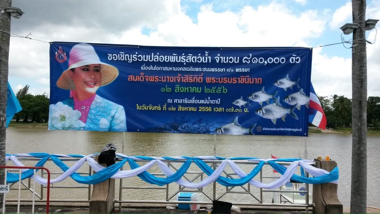เนื่องในวโรกาส วันแม่ ปี 2556 ได้มีโอกาสร่วมงานปล่อยปลา ณ ริมเขื่อนแม่น้ำตาปี จ.สุราษฎร์ธานี โดยความร่วมมือร่วมใจของเจ้าหน้าที่สำนักงานประมงจังหภวัดสุราษฎร์ธานี เทศบาลนครสุราษฎร์ธานี เหล่าข้าราชการและประชาชนชาวจังหวัดสุราษฎร์ธานี ร่วมกันปล่อยปลา คืนชีวิตสัตว์น้ำให้กับ แม่น้ำตาปี เพื่อฟื้นฟูทรัพยากร ให้มีกิน มีใช้ อย่างยั่งยืน ต่อไป