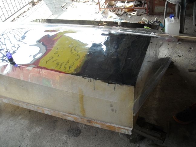 เสร็จแล้วก็รอให้เจลโค๊ดแข็ง พอเริ่มแข็งประมาณเอาเล็บจิกได้ ก็ม้วนเอาแผ่นฟิล์มออก จะเห็นว่างานเรียบกิ๊บ เงางามมาก (ดีใจ)
