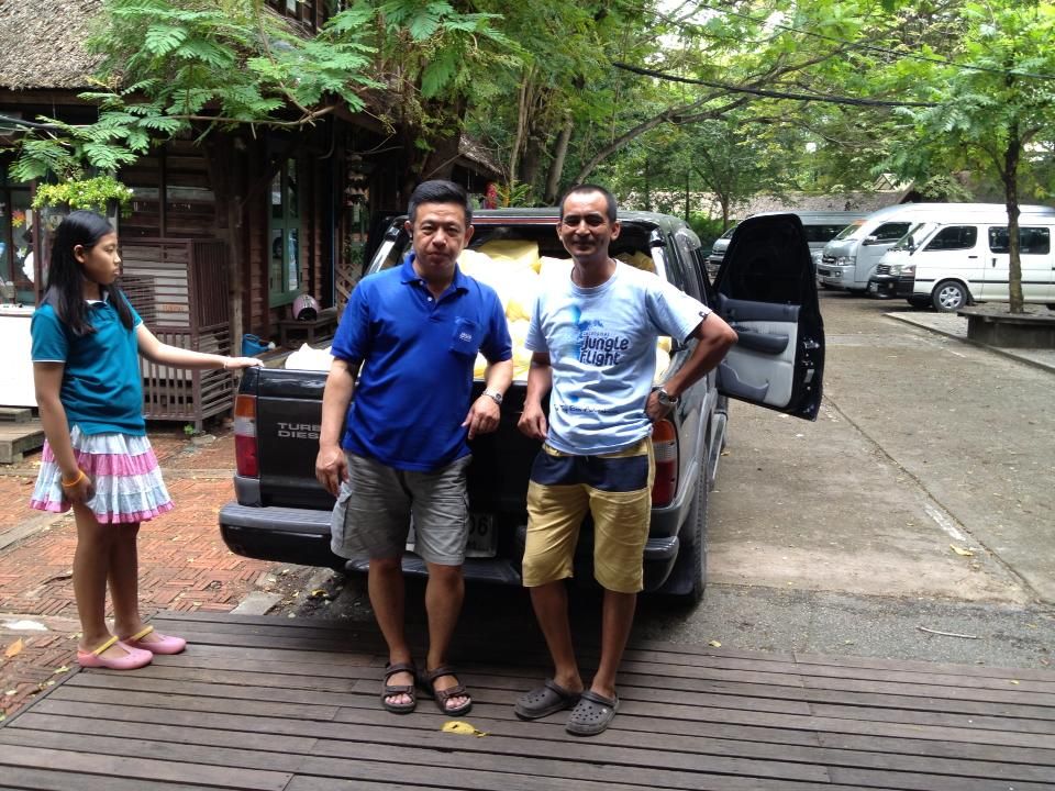 ถุงยังชีพจากการบริจากของเพื่อนๆ ที่มีจิตอาสาจากกลุ่มมหาชัย นำโดยน้าโทน