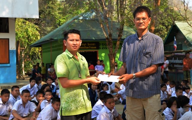 เอาขนม 86 ชุด พัดลมเพดาน 12 ตัว ที่ใส่เรือมา มอบให้โรงเรียน