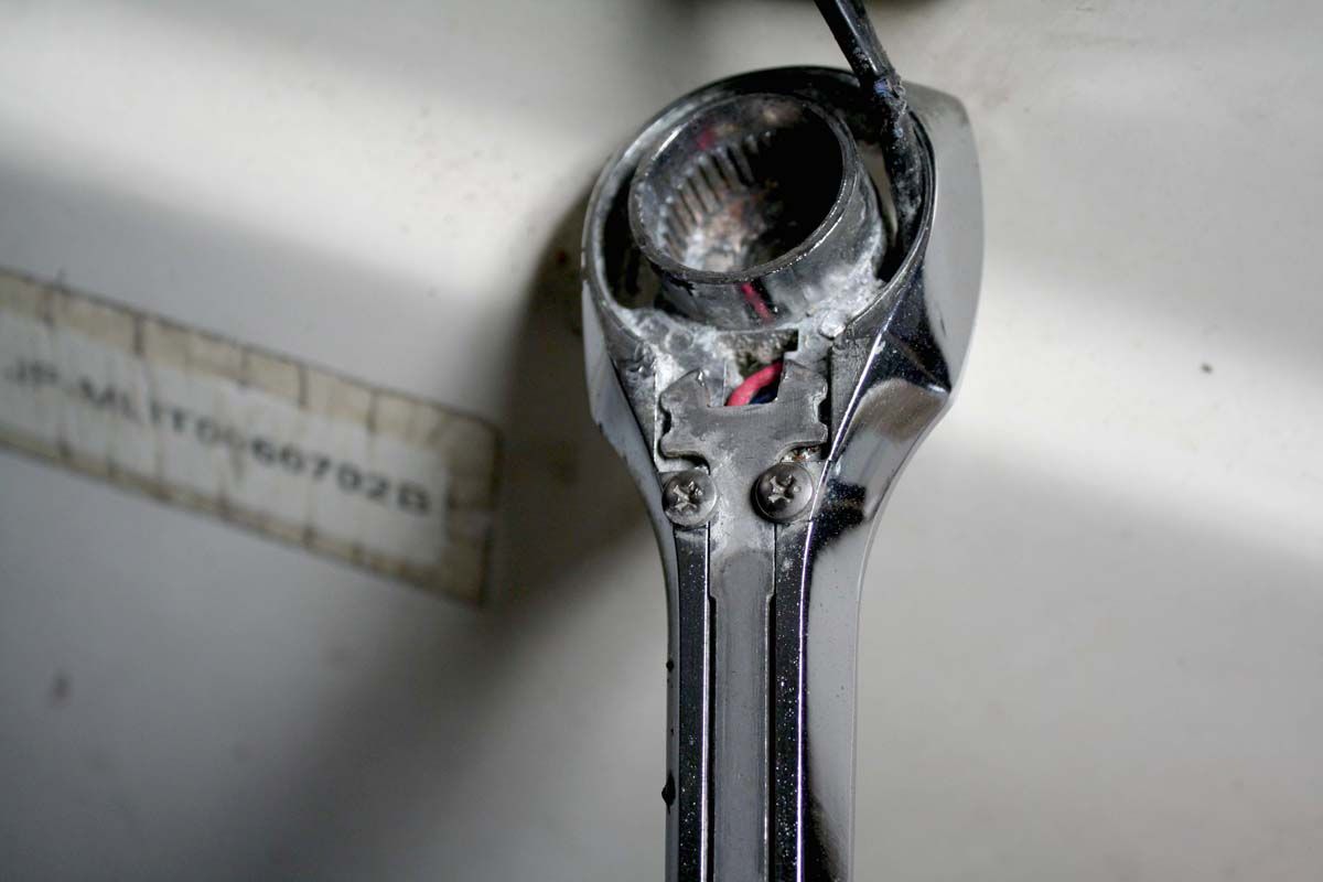 ถอดน๊อตยึดขาเหล็กควบคุม น๊อต 2 ตัว