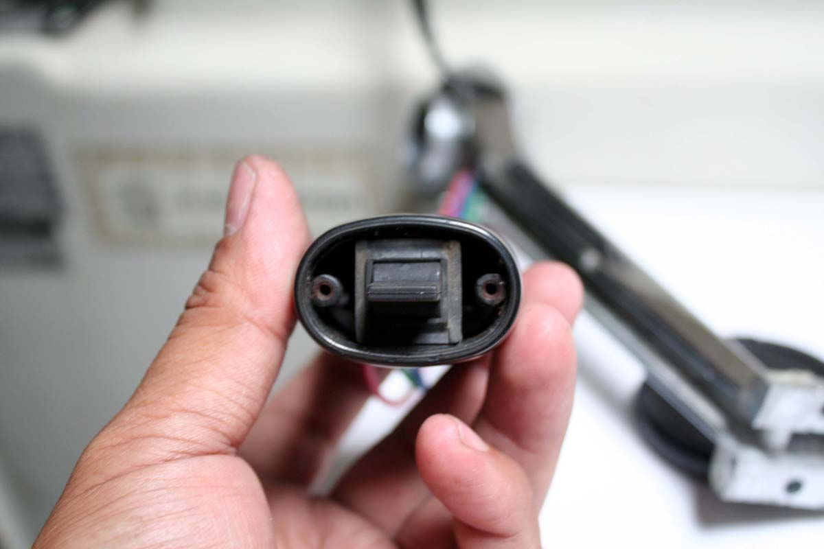 ถอดน๊อตใต้คันสวิทซ์ตรงปุ่มแดง น๊อต 4 ตัว