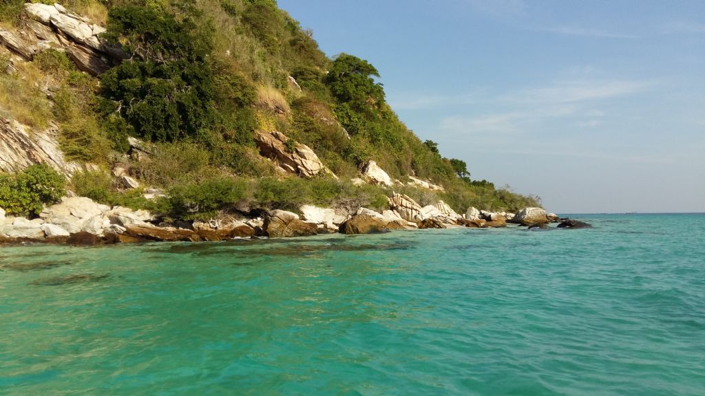สวยจังครับ แต่ไม่มีใครกล้าลง เลยไหลช้าๆ กินน้ำกินท่า ตัดสินใจไปเกาะมารวิชัยต่อ...อีกอึดใจ(ใหญ๋ๆ)นึง...เกาะนั้นชัวร์ ผมไปมาหลายรอบ ไม่เคยเจอ ตัวเอรี้ยว่ายไม่ถึงแน่ๆ...และพากันหัวเราะ...คิคิ