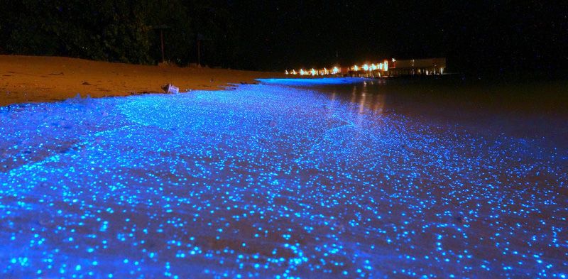 หมู่เกาะมัลดีฟฟ์ เป็นหมู่เกาะที่ตั้งอยู่กลางทะเลอันดามัน มหาสมุทรอินเดีย มีบางเกาะที่มักเกิด ทะเลเรืองแสงสีฟ้า