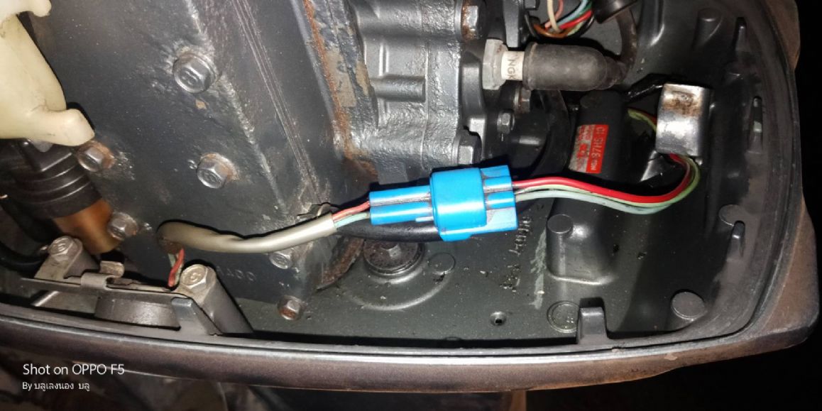 ลองไล่เช็คสายที่วิ่งมาสวิทช์ทริมท้ายเรือ(แดง,เขียวแก่ , เขียวอ่อน) พบว่าฟิวส์ที่สายสีแดงขาด
