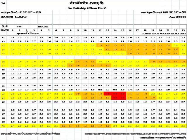 ตารางน้ำสัตหีบ เดือน เม.ย.ครับ !!