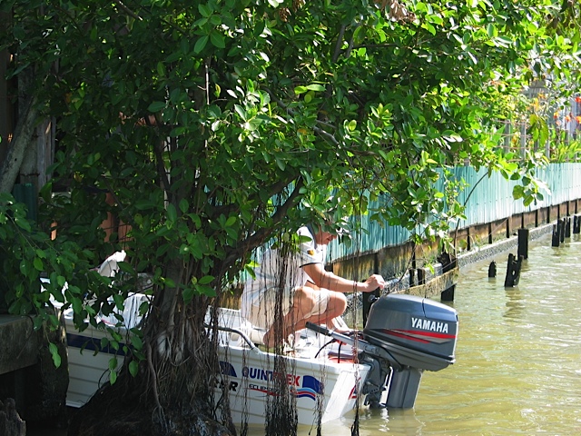 เลยประตูน้ำมาประมาณ 1 ก.ม. เราจะไม่ตรงไปทางเกาะลิงแต่ละเลี้ยวขวาเข้าคลองสนามชัยครับ (คลองนี้คดโค้งเหลือหลายน้อง ๆ บางตะบูน)