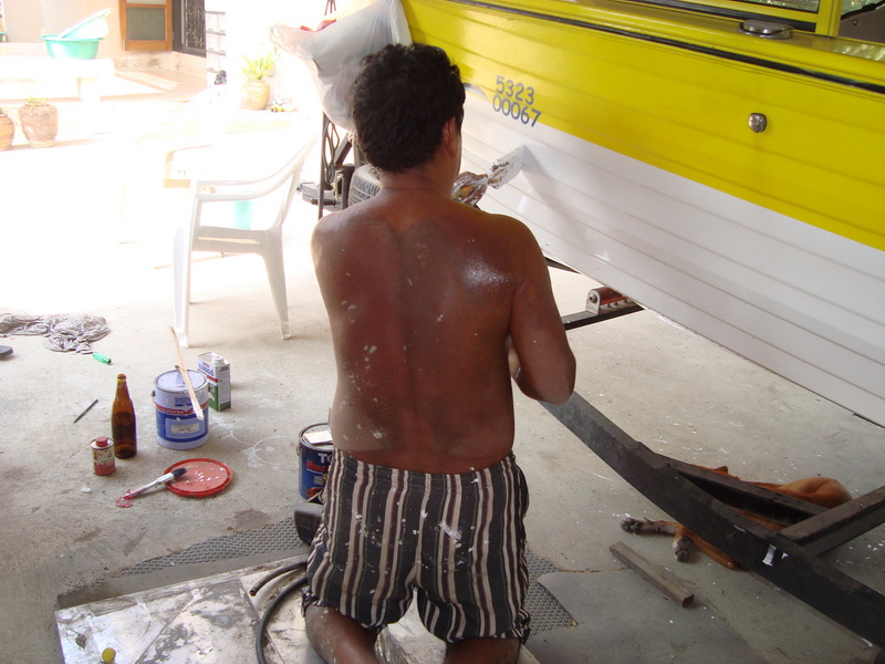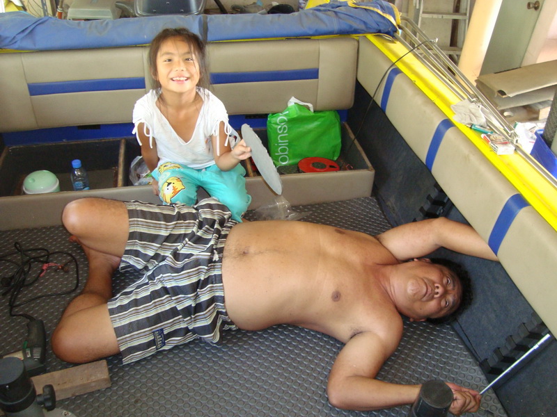 โฟมเก่าออก ประมาณ 5 ถุงดำ และขัดท้องเรือกงเฟรมต่างๆด้วยลูกหนู ส่วนตามซอกมุมต้องใช้แปรงลวดขัดด้วยมือขั้นตอน 2 อย่างนี้เหนื่อยและใช้เวลามากที่สุดและโฟมเก่าที่เขาเทใว้มันก้อติดแน่นมากตามซอกมุมต่างๆต้องใช้มีดหรือเหล็กแหลมค่อยๆแซะออกกว่าจะหมดต้องใช้เวลาครับ