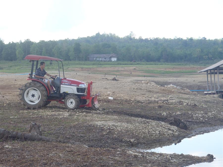 แล้วเราก็กลับมาที่แพ ก็มาเจอท่านผู้ใหญ่ กำลังขับรถไถ กลัวน้องๆเอาเรือขึ้นไม่ได้