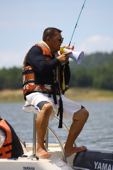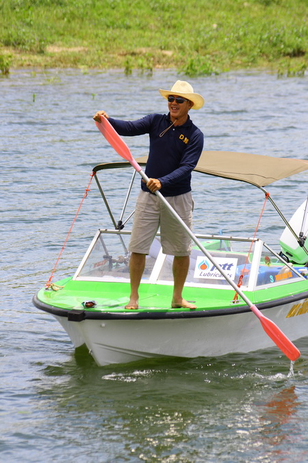 พี่แดงกำลังใช้มอเตอร์ไกด์เข้าเทียบท่า...