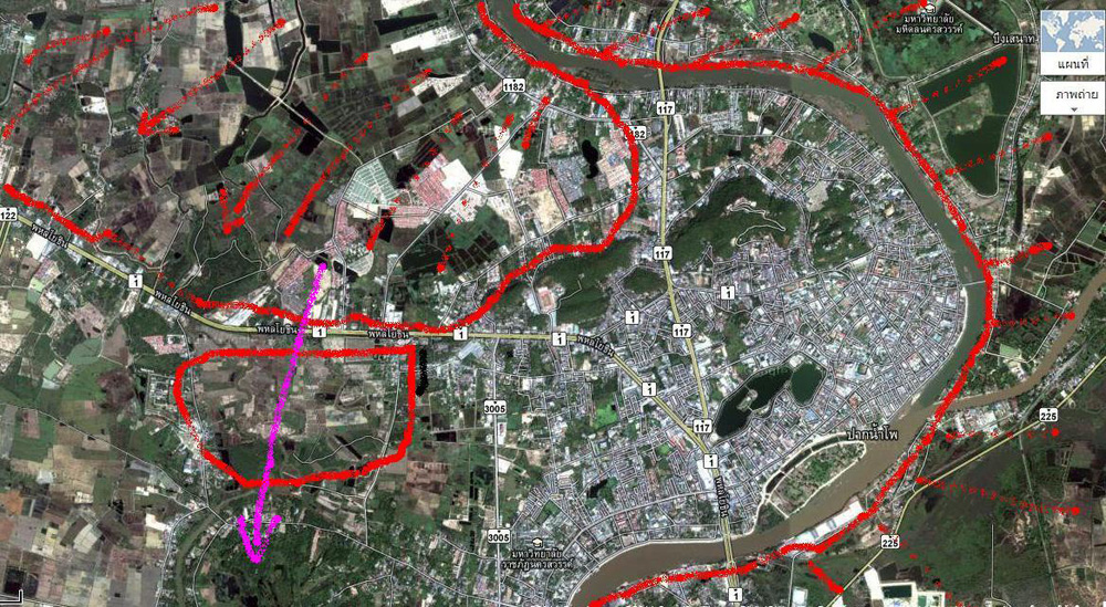 น้ำใช้วิธีลัดตัดอีกฝั่งของเมือง แล้วไหลกลับเข้าเจ้าพระยาอย่างเดิม