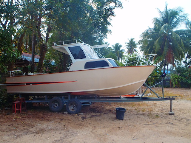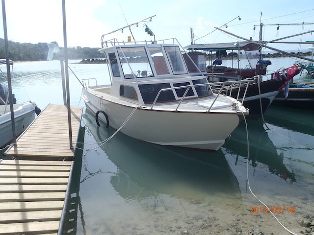 เทียบท่าครับ ติดเครื่องจัดการไล่นำ้ในระบบระบายความร้อนเสร็จลองเร่งดู เอ มันเร่งไม่ขึ้นใด้3,00รอบแล้วตัด ใจแฟบเลยครับ อุ่นเครื่องลองเข้าเกียร์ D-2 วิ่งดู กดคันเร่งปุ๊บเรือออกตัวยกดีแต่ไปตันแค่3,000รอบความเร็ว17น๊อต พวยนำ้ที่ท้ายใบจักรดีแต่รอบไม่พอเครื่องเร่งไม่ขึ้นเรือเกือบๆจะขึ้นนำ้ยัง งงๆอยู่ โทรปรึกษาช่างเครื่องเล่าอาการให้ฟังน้องเขาบอกว่ากล่องน่าจะล๊อกอะไรบางอย่างใว้เด๋วมาดูให้ สรุปเลยยังไม่ลงตัว ภาพโดยรวม เรือแข็งนำ้ดีมากครับขึ้นโหนข้างเดียว 4 คนไม่ค่อยกระดุก กระดิก ระบบหางเสือบังคับเลี้ยวยอดเยี่ยม เกียร์ถอยหลังกินนำ้ดีถอยเลี้ยวใด้อย่างใจ การควบคุมทิศทางในความเร็วเท่านี้นิ่งมาก
