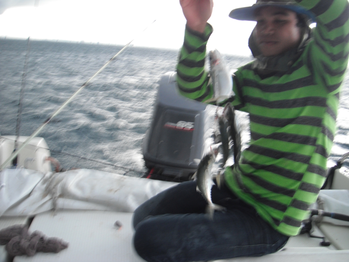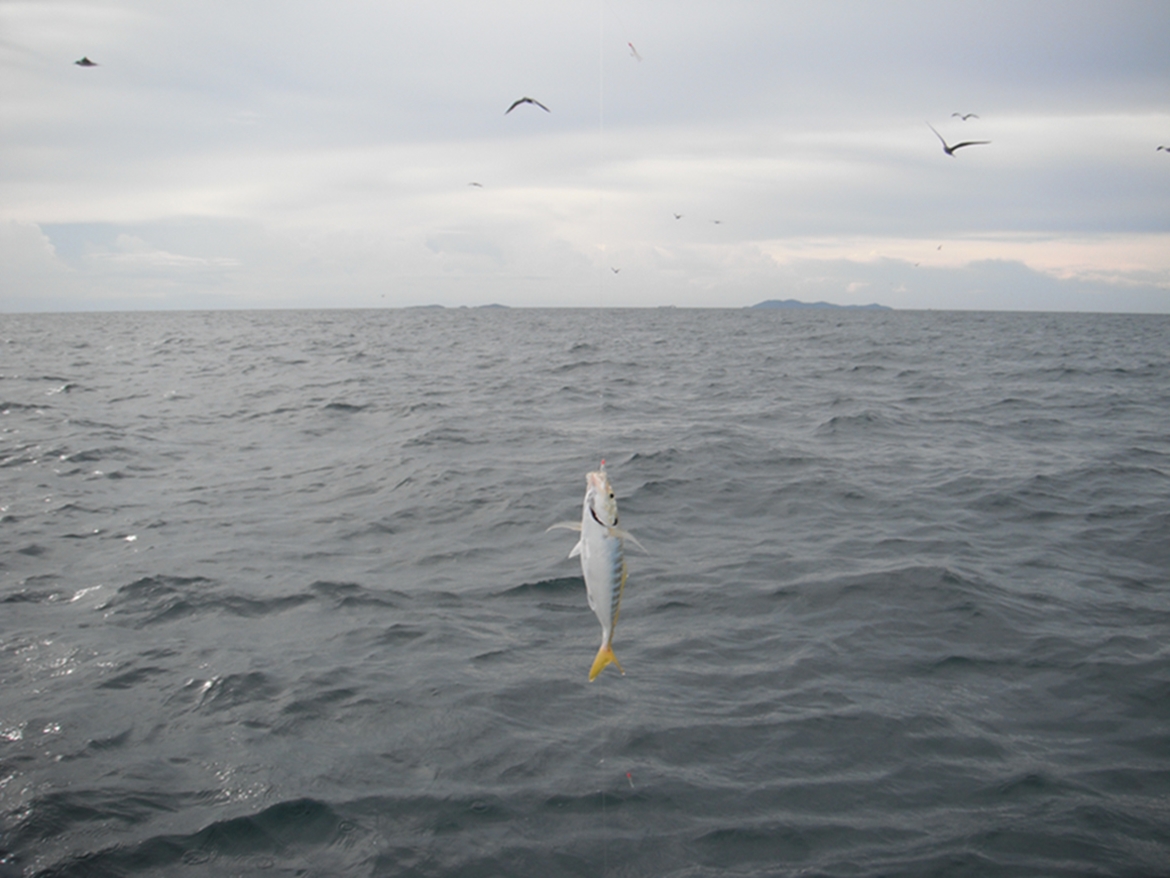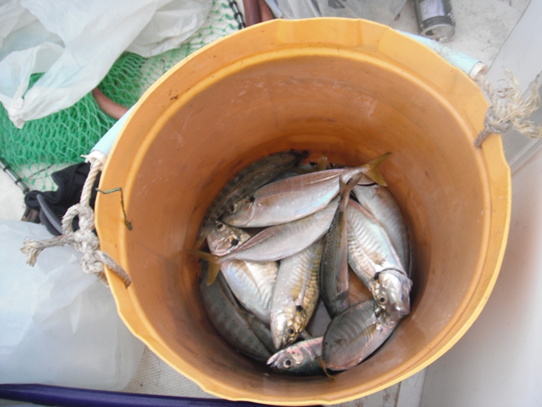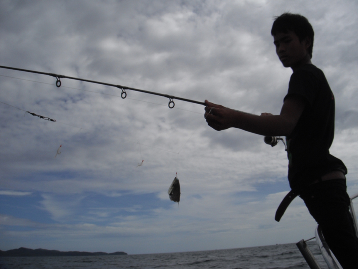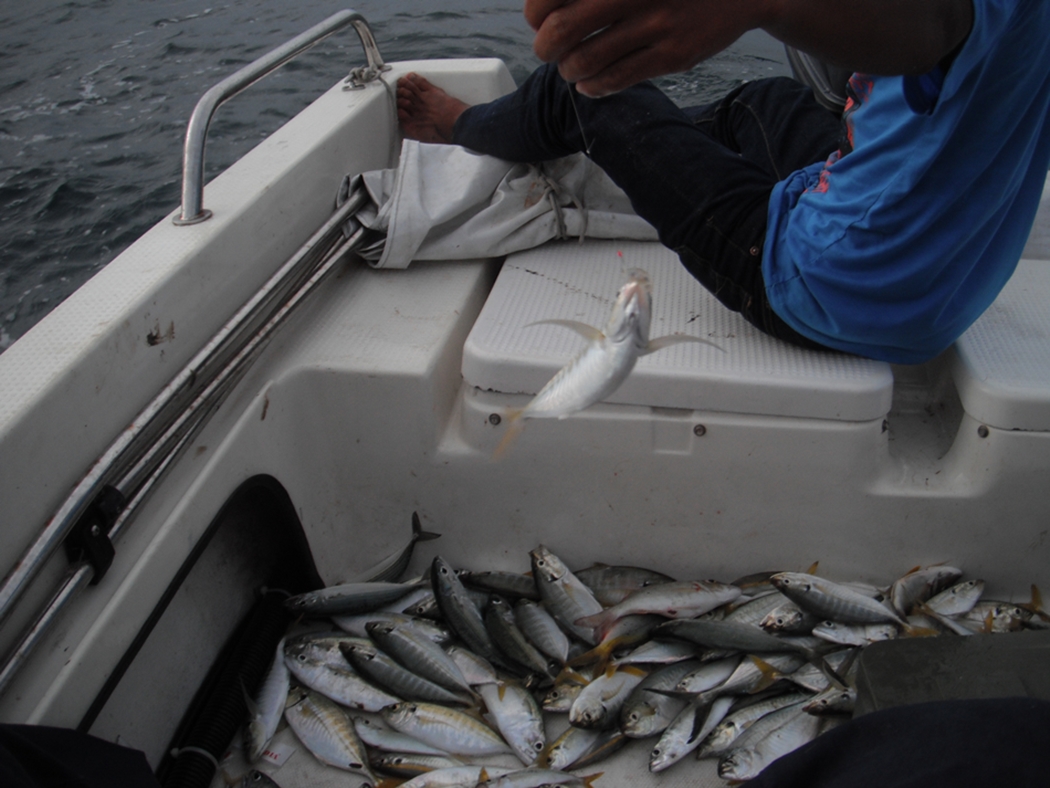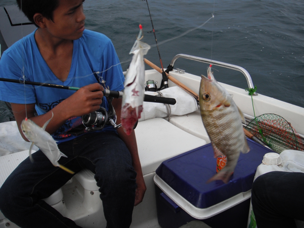 สักพักกัปตันเอกซึ่งนั่งตกปลาอยู่ที่หัวเรือ ก็นำปลามาสมทบอีกหนึ่งถุง!!