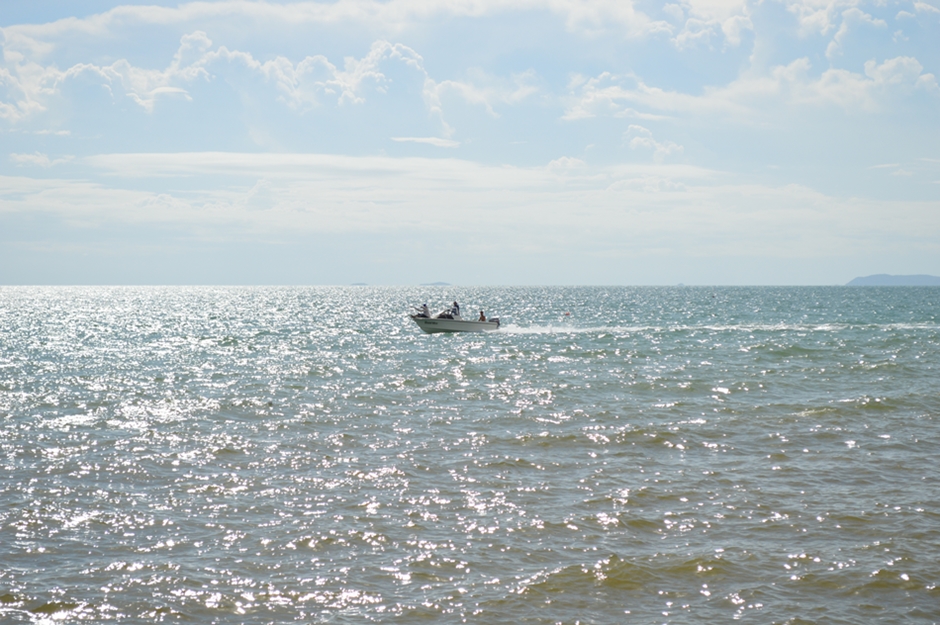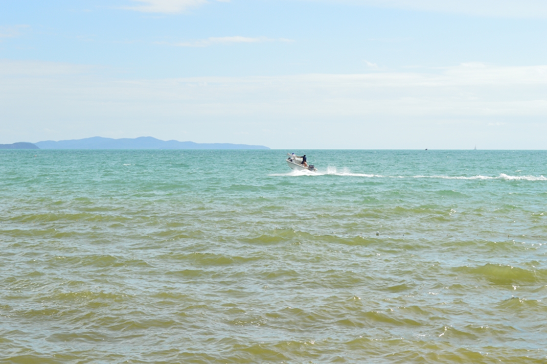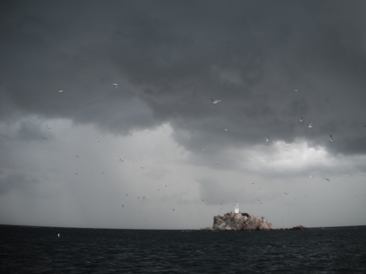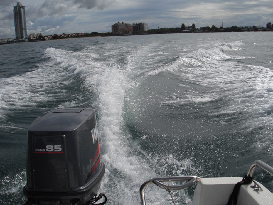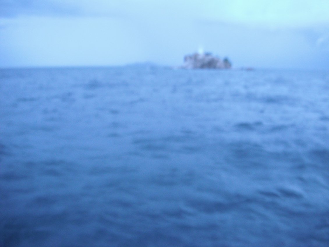 15.45น. วันที่3ก.ย.55 พอเห็นคลื่นลมเริ่มเบาลง james dondก็เอาเรือเร็วลงทันที โดยชวนช่างไมค์กับช่างโป่งไปด้วย ถึงแม้ระยะนี้จะมีฝนตกและคลื่นลมแรงช่วงบ่ายและค่ำทุกวัน แต่ลมตะโก้ที่พัดมาจากทางทิศตะวันตกเฉียงเหนือ ก็จะแรงเพียงแค่ไม่เกินชั่วโมงกว่าๆเท่านั้น! และเมื่อลมตะโก้มาเยือน ก็เป็นสัญญาณที่ดีว่า...นับจากนี้ไม่นาน...ลมมรสุมตะวันตกเฉียงใต้ใกล้จะสิ้นสุดลงแล้ว! อีกประมาณ1เดือนก็จะเข้าสูู่ช่วงปลายฝนต้นหนาวนั่นเอง!!!