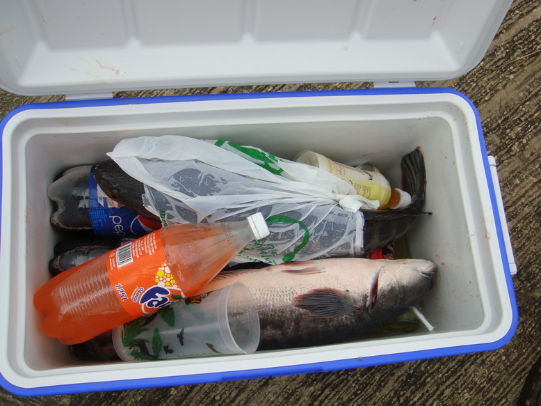 และนี่ครับผลงานที่อุตสาห์ไปลำบากนอนกลางสายฝนกันมาทั้งคืน ชะโด 2 ตัว นน.ตัวละประมาณ 3 กก. ผลงานน้องต้อง กะน้าพีท