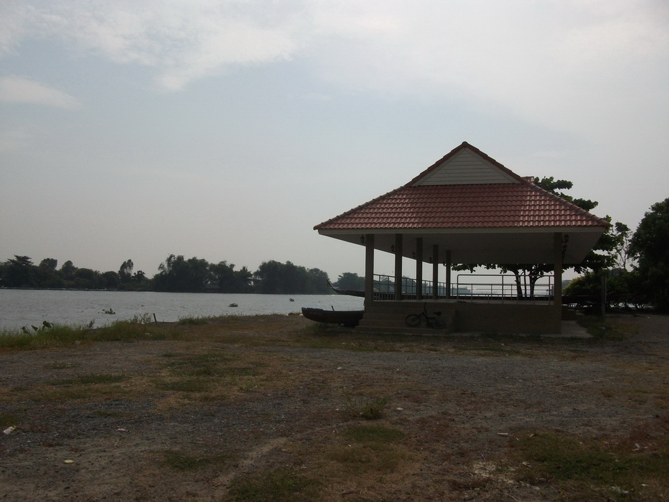 ทิวทัศน์ระหว่างการเดินทางครึ้มแต่ไม่มีฝน ผืนน้ำเรียบ