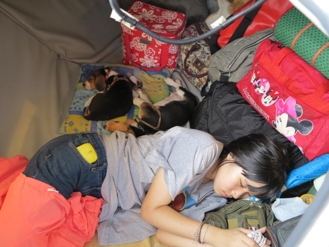 ออกมาสักพัก ลูกสาวกับหมาเลยมุดไปนอนหัวเรือ