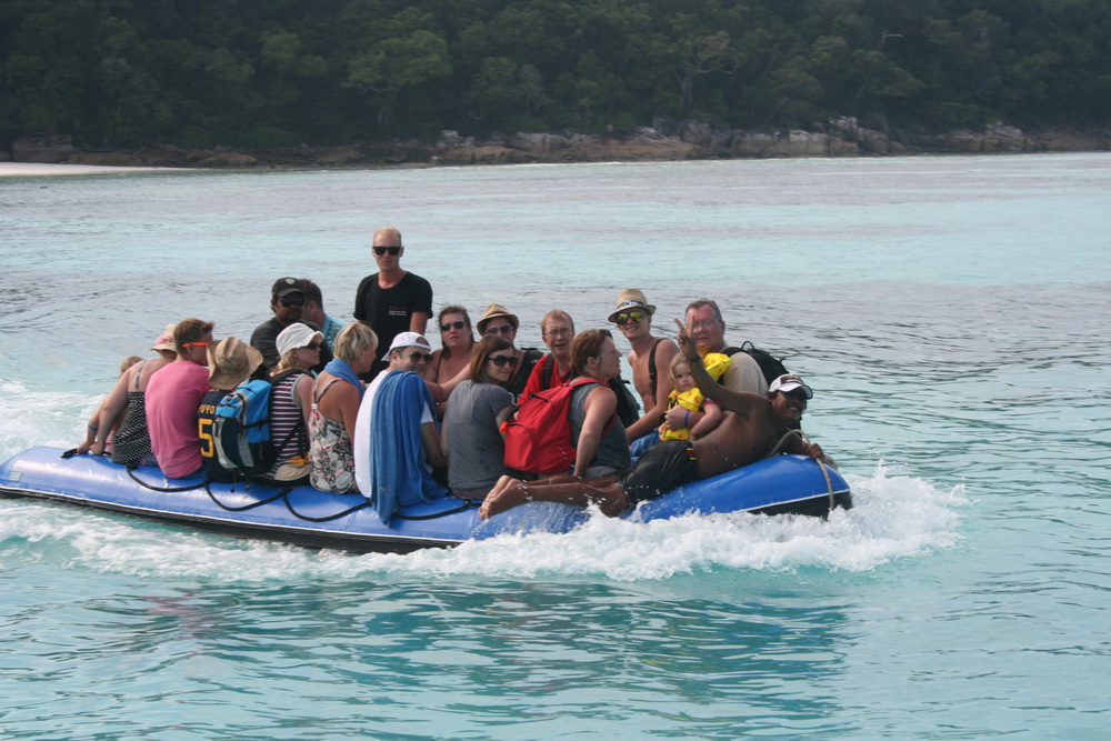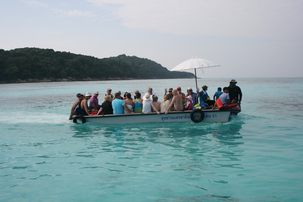ว่าแล้วคณะเราก็รีบดิ่งต่อไปยังเกาะสุรินทร์ทันทีด้วยเกรงว่าจะมืดกลางทาง ด้วยระยะทาง 44 กม. จากเกาะตาชัย