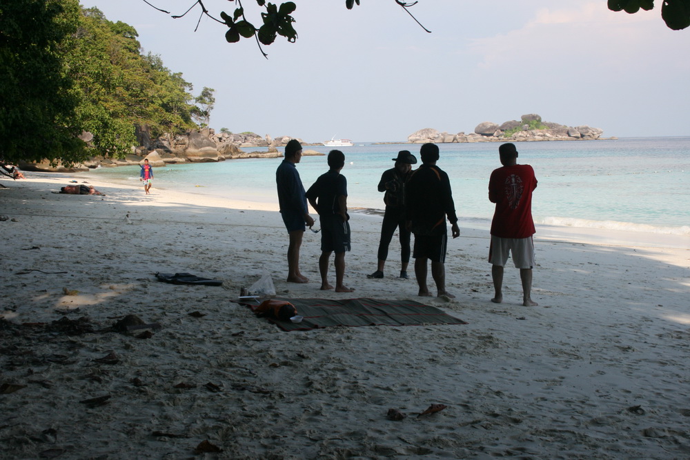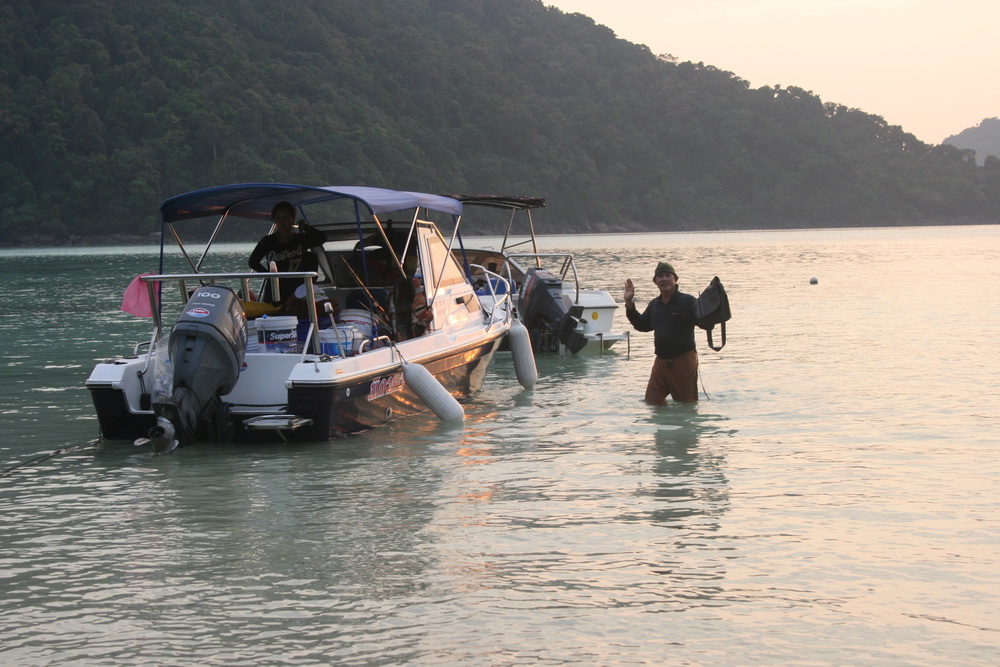 หลังจากปรึกษากันแล้ว เราก็ล้มเลิกแผนการค้างคืนบนเกาะตาชัยทั้งที่ได้ประสานขออนุญาตค้างคืนเป็นกรณีพิเศษ เนื่องจากหาดด้านหน้าไม่บังลมทั้งตะวันออกและตะวันตก เรียกว่ารับทั้งสองด้านเลย ประกอบกับช่วงนี้ คลื่นลมแรงช่วงเย็นกลางคืนต่อเช้าเลย พวกเราเลยไม่อยากเสี่ยง