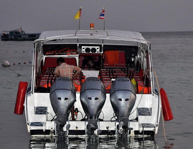 ผมเคยเห็นเค้าโหลดน้ำมันเรือโดยสารไปหลีเป๊ะ เครื่อง Honda200 สี่ตัว เติมหมดถังสองร้อยลิตร สามถังครับ