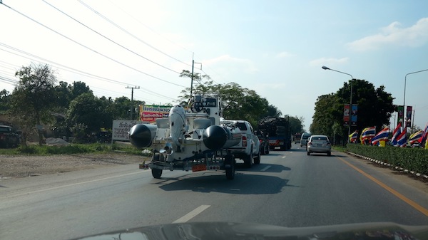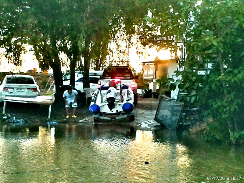 ลงน้ำแล้วครับ มีลำเหลือง 10 ฟุตเกาะท้ายไปด้วย ย่ำคลื่นสองเมตรกว่าเทสเรือไปในตัวครับ