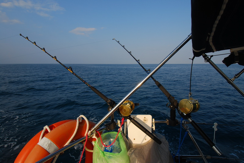 เริ่มสว่าง ก็ลงเหยื่อปลอม ทรอลลิ่งTrolling หัวเจ็ทแบบพ่นน้ำ ขาว-เขียว-แดง ไม่ถึงห้านาที ก็ติดปลา ลากกันอยู่ซักพัก ก็ได้ปลาอินทรีย์ ตัวพอประมาณ นำมาชั่งน้ำหนักได้5กิโลกรัม ไม่มั่นใจในตราชั่งว่าตรงตามมาตรฐานหรือไม่ จึงเอาน้ำมาชั่ง โดยเพิ่มทีละลิตร ปรากฏว่าตรงครับ ที่ต้องชั่งปลาก็เพราะ ถ้าคาดคะเนกันเอง มักจะเกินจริง