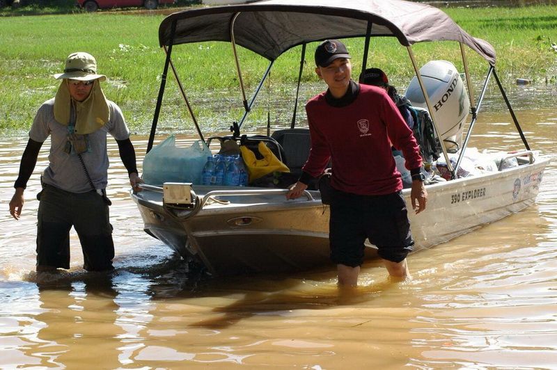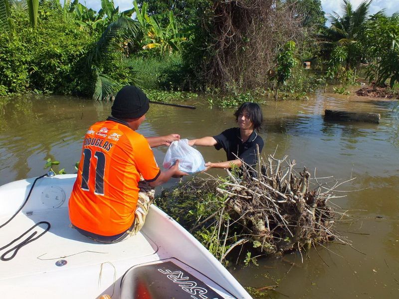 20 ต.ค.56 หน่วยเรือพระราชทานฯและชุดปฏิบัติการเคลื่อนที่เร็วทางน้ำ ตำรวจน้ำ นำถุงยังชีพช่วยเหลือ อ.คลองเขื่อน จว.ฉะเชิงเทรา