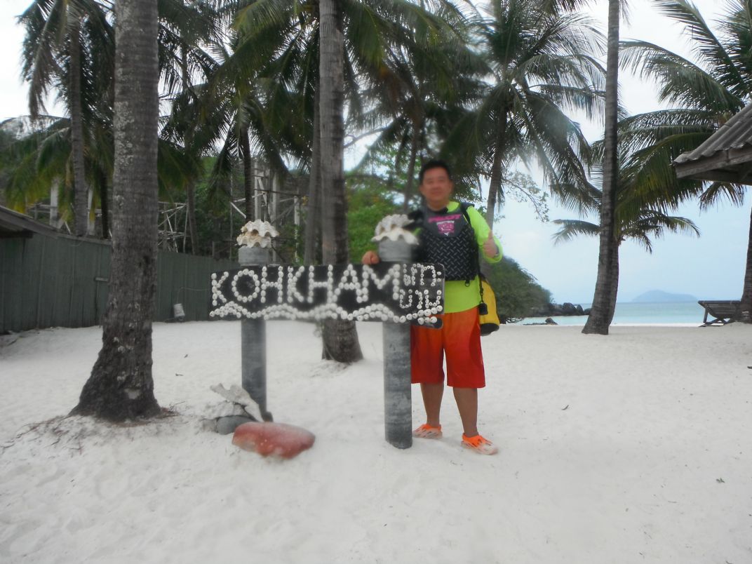 5 นาทีก็ถึงเกาะขามครับ อยู่เยื้องฝั่งตรงข้ามกับที่เราเวาะทานข้าวเที่ยงกัน หาดทรายขาวสวยดี
