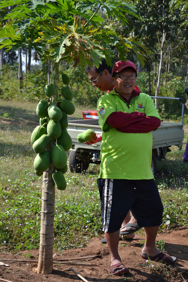 ที่ยืนข้างต้นมะละกอ ไมต้นมานเตี้ยจังวะ ลูกยังเหลือหรือปล่าวนะ ม่ายใช่น้าหนุ่มแกเด็ดไปด้วยนะ