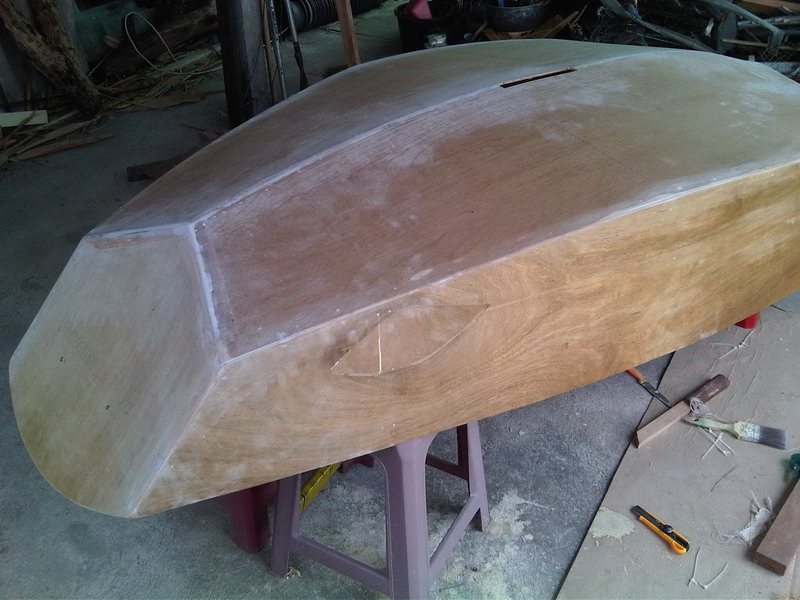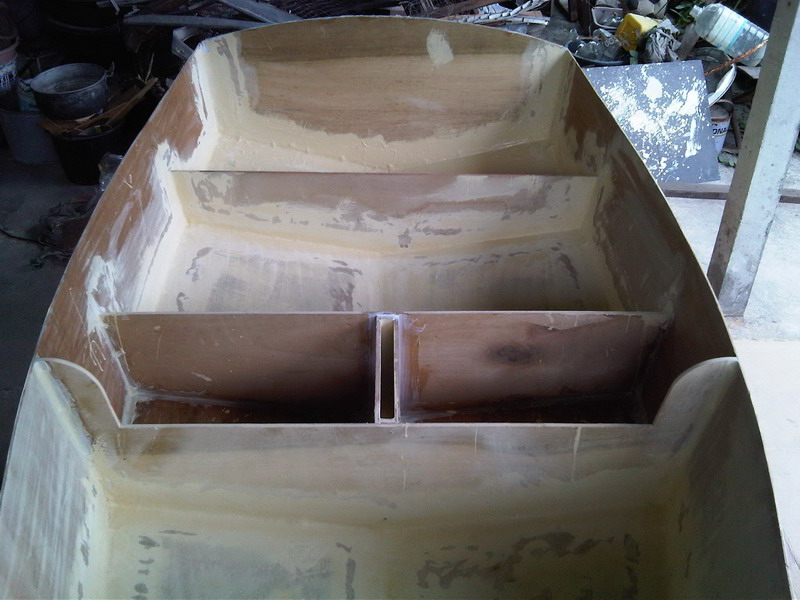 ขัดเรียบร้อย ยาแนวกล่อง...อ้าว...ในคู่มือเรียกแดกเกอร์บอร์ดหรือนี่เรียกผิดมาตั้งนาน อายจัง เอาเป็นว่ายึดและยาแนว Daggerboard เสร็จพร้อมทั้งขัดผิวด้านในเรียบร้อยเตรียมลงสีกับปูที่นั่ง