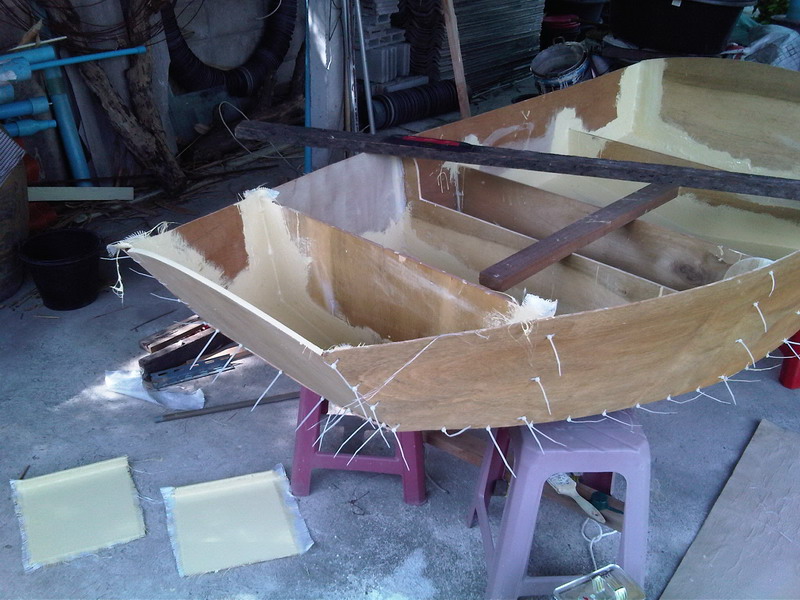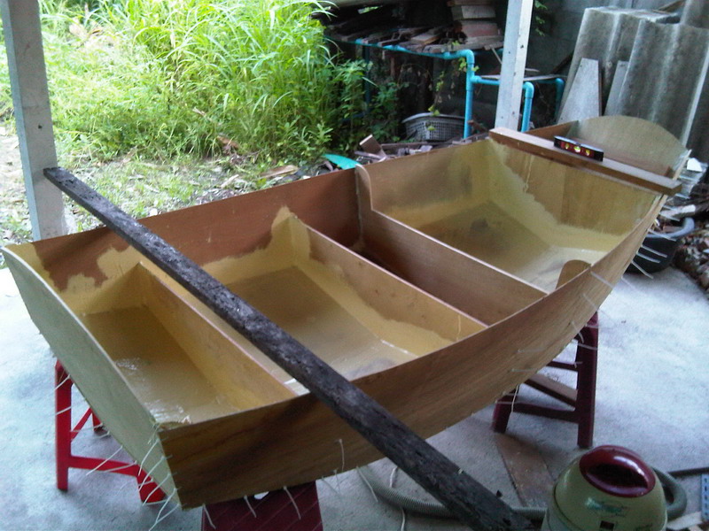 ผสมสีตอนแรก ใช้ทินเนอร์ผสมลงไปนิดเดียวมันหนืดครับ ซึมไม่ค่อยดีทำงานยากต้องเหลวๆ ถ้าผสมแบบหนืดๆ ใช้ตอนลงใยแก้วข้างในครับ ทาสีลงไปก่อนปูใยแก้วทับแล้วตามด้วยสีอีกครั้งแข็งแรงมากครับ ส่วนเรื่องสีกับอีป๊อกซี่เรซิ่น ผมไม่เคยใช้อีป๊อกซี่เรซิ่นเพราะเป็นลำแรกเหมือนกัน แต่ดูรูปการทำเรือของน้าชอบทำแล้วผมว่าข้อดีของอีป๊อกซี่เรซิ่นคือเห็นว่าตรงไหนมีฟองอากาศแล้วไล่ออกได้ ส่วนสีมองไม่เห็นเลยครับ ต้องค่อยๆ ดูว่าตรงไหนมันโป่ง
