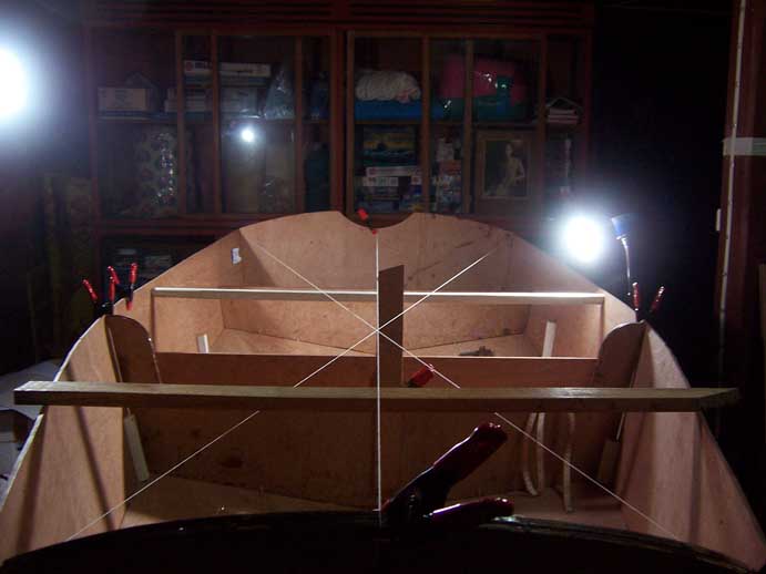 ...สำหรับ transom seat ของผมนั้นมันลงในตำแหน่งที่ฟิตพอดีที่เลยจุดอ้างอิงตามแปลนออกไปทางท้ายเรือ 2 นิ้ว เห็นจะได้ แปลว่าแป้นนั่งท้ายจะสั้น-แคบกว่าในแปลน ยังดีที่ครึ่งหน้าเรือยังมีสัดส่วนปกติอยู่ทั้งห้องที่วางเสาเรือ ห้องหน้า daggerboard นอกนั้นไม่มีอะไรเพี้ยนไปกว่าที่สำรวจดูแล้ว
