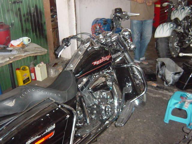 โอโห น้าแดง ฮาร์เล่ย์คันนี้ยับมาเลยนะครับ จอดอยู่ที่ข้างคลับหรือเปล่าครับ ซ่อมอีกอานเลย...