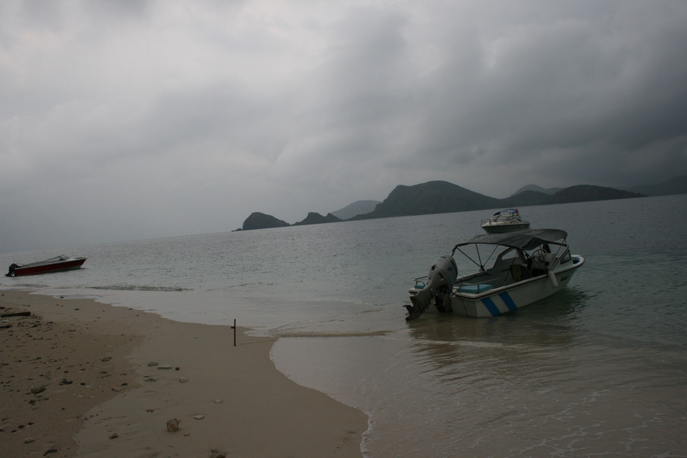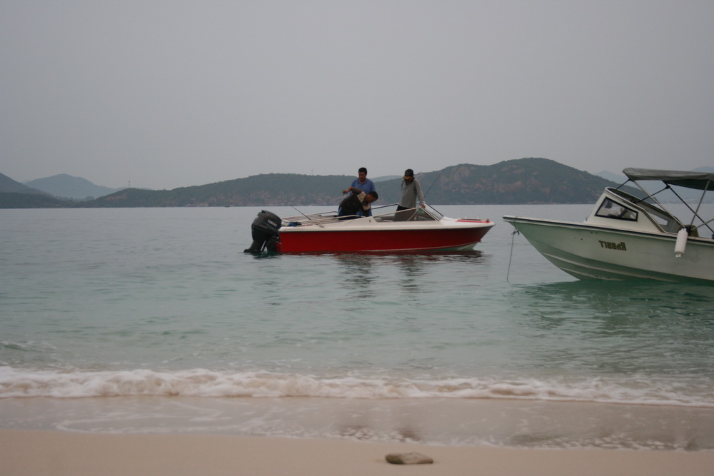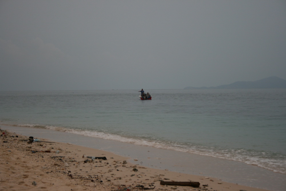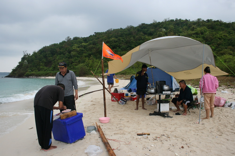 เช้าเอาเรือลงที่แสมสารวิลล่า (เรือเล็กลงที่หน้าหาดในค่ายผมได้)