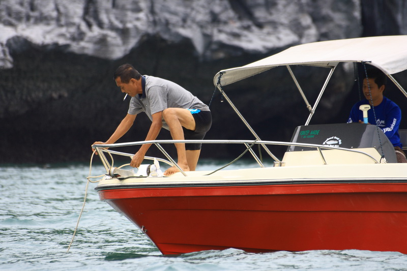 แต่ก่อนที่จะขึ้นไปทานข้าว ตอนที่กำลังจะขึ้นฝั่งขณะที่ผมจะก้าวข้ามเรือเกิดพลาดตกลงไปในน้ำในขณะที่ยังสะพายกระเป๋ากล้องต้องขอขอบคุณพี่แดงมาก ๆมา ณ.ที่นี้ด้วยนะครับ ที่ใช้ความไวหยิบกระเป๋ากล้องขึ้นมาให้ก่อน ตกลงกล้องปลอดภัยคนเปียกถึงหัวแต่ถูกต้องแล้วครับในการตัดสินใจและความไวของพี่แดง แต่พอขึ้นมาบนบกมาแล้วได้ยินแกบอกว่าแต่อย่างอื่นไม่ไวนะโว้ย ฮา........