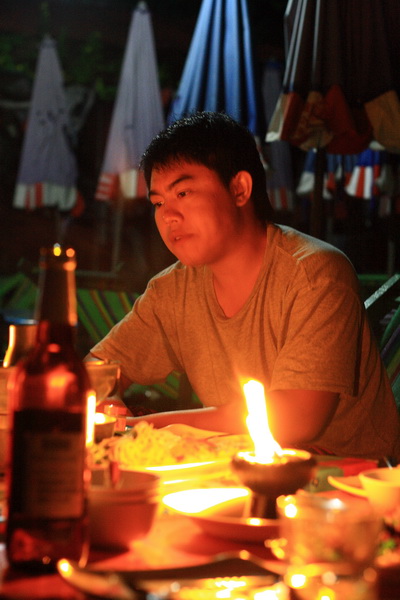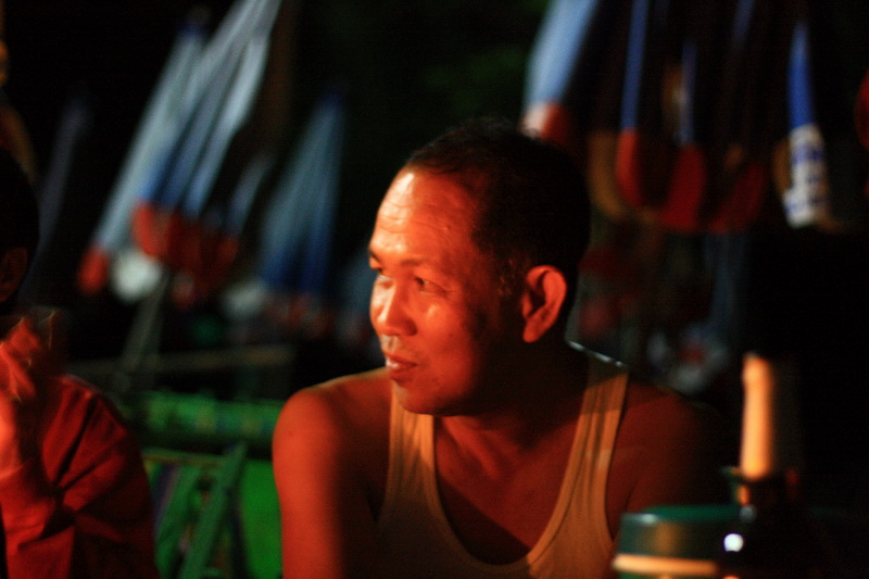 หลังจากทานข้าวเย็นเสร็จก็ขับเรือกลับมาที่พักอาบน้ำอาบท่าเสร็จแล้วก็มานั่งเสวนากันต่อภายใต้แสงตะเกียง ตอนที่ทานข้าวเย็นน้ามานพก็ตามมาถึง