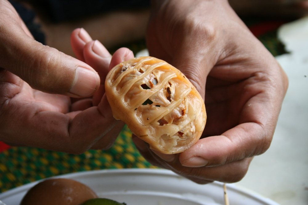 เด็ดท่อนหางทิ้ง จิ้มน้ำจิ้ม รสชาดคล้ายหอยโข่งแต่ไม่มีเมือกและนุ่มอร่อยกว่าเยอะ