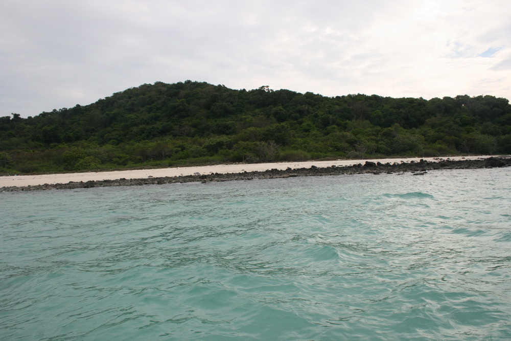 แต่พอถึงเกาะจวง พ้นแนวบังลม ก็เจอคลืนเข้าให้ เลยต้องวิ่งหลบมาอีกด้านหนึ่งของเกาะจวง ที่เป็นแนวหิน