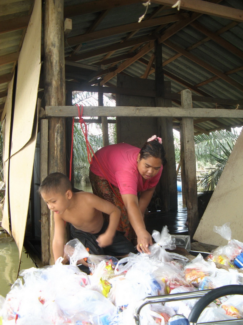 ขอขอบคุณเป็นอย่างสูงกับสมาชิกของกลุ่มบิ๊กแค้มป์และออฟโรดโดยน้าบิ๊กที่มาช่วยกันสัก 20 คนน่าจะใด้ +กับเพื่อนใหม่ที่เจอกันที่โรงแรม(เธอบอกว่าชื่อ เอ๋ มาจากประจวบ)...นำข้าวของมารวมด้วยจัดใด้อีก 100 ชุด รวมถุงยังชีพวันนี้ ของเรา 500 +ของกลุ่มน้าบิ๊ก +1500+คุณเอ๋ 100....รวมเป็น 1500 ชุด ส่วนของเราแบ่งเป็น 2ชุด โดยน้าโทนกะน้าบอยนำไปส่งมอบตรงคลองน้อย และแม่น้ำตาปี 100 ชุด ผมกับพี่ต๋อย แยกไปกับชุดพี่บิ๊กไปทางที่ผู้ใหญ่บ้านซึ่งได้เข้ามาประสานเราโดยตรง 400 ชุด (หมู่ 9..290 หมู่6..90...หมู่7...80)