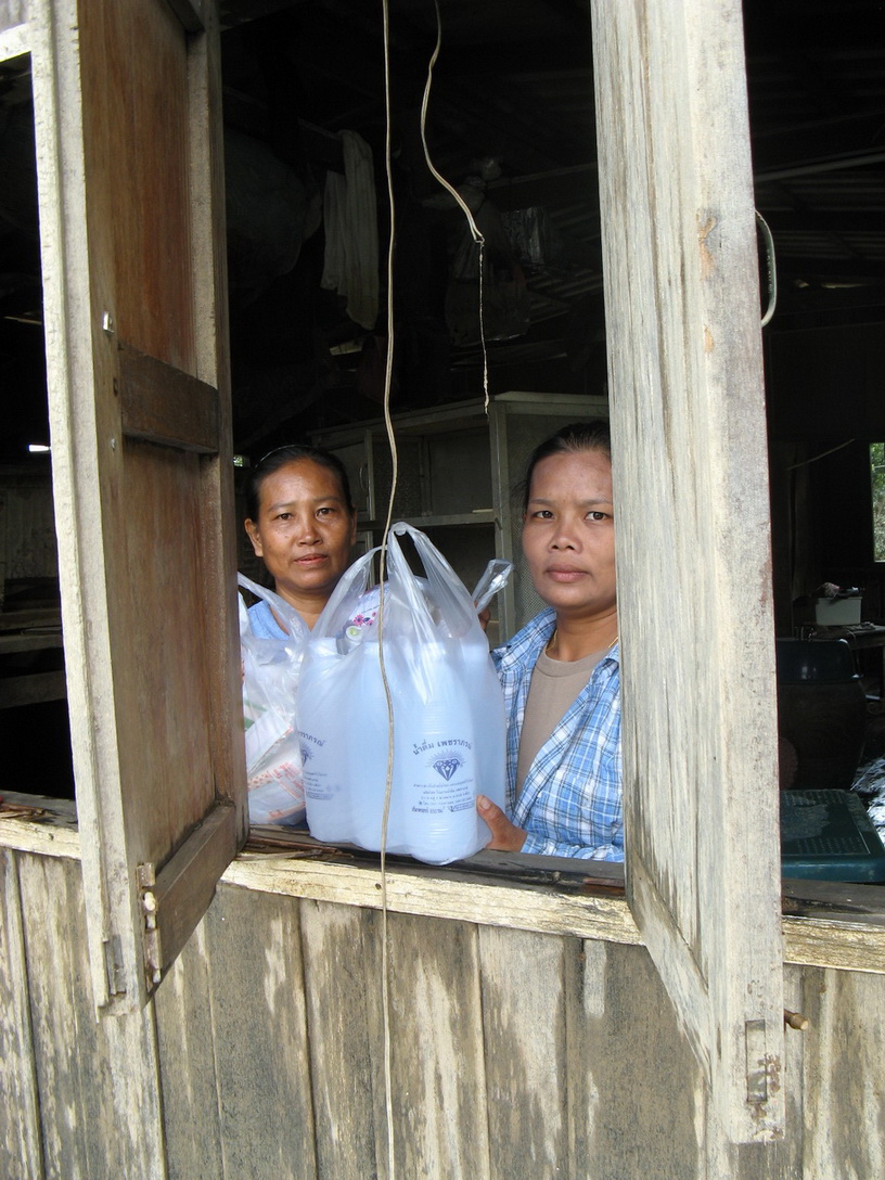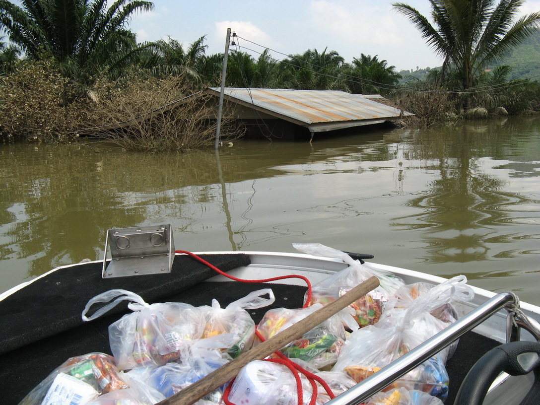คือภาระกิจ นำข้าวกล่อง จำนวน 2000 กล่อง แจกชาวบ้าน เนื่องจากชาวบ้านได้รับข้าวสาร อาหารแห้งไปแล้ว ไม่สามารถประกอบอาหารได้ เพราะไฟฟ้าไม่มี น้ำประปาไม่ไหล น้ำท่วมสูง อยู่บนชั้นสองได้ ไม่มีเตาฟืน คณะช่วยเหลือผู้ประสพภัยฯจึงประชุมกันว่า แจกข้าวกล่องไปก่อน จนกว่าจะเข้าสู่ สภาวะปกติหรือน้ำลดลงมา โดยมี ตัวแทนจาก มูลนิธิชัยพัฒนา สนับสนุนข้าวสาร มูลนิธิเพื่อนพึ่งภาฯ สนับสนุน งบ ค่าปรุงอาหาร วันละ 3 หมื่นบาท โดยมีน้ำดื่มอีกส่วนหนึ่ง โดยกำนังขอแรงกลุ่มแม่บ้านมาช่วยปรุงอาหาร