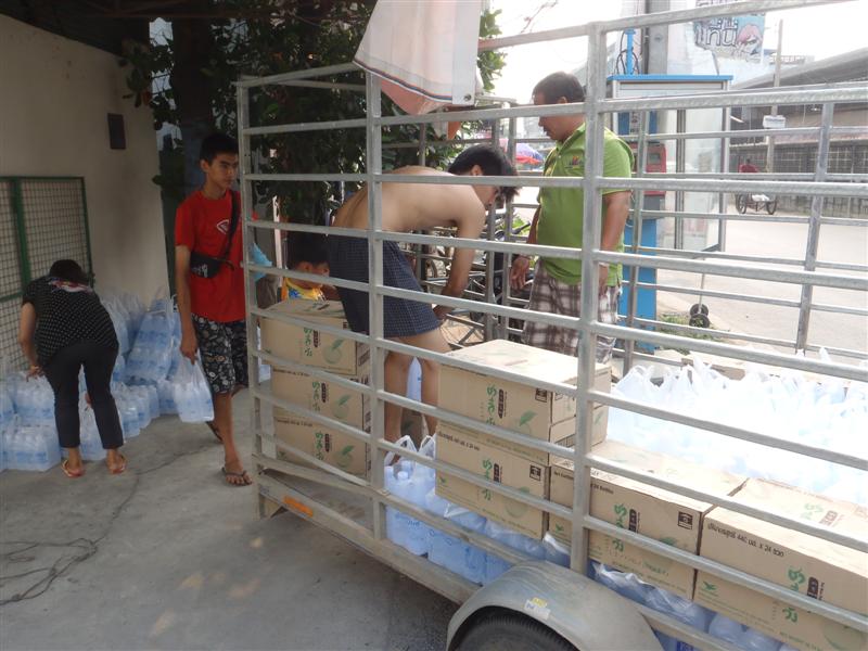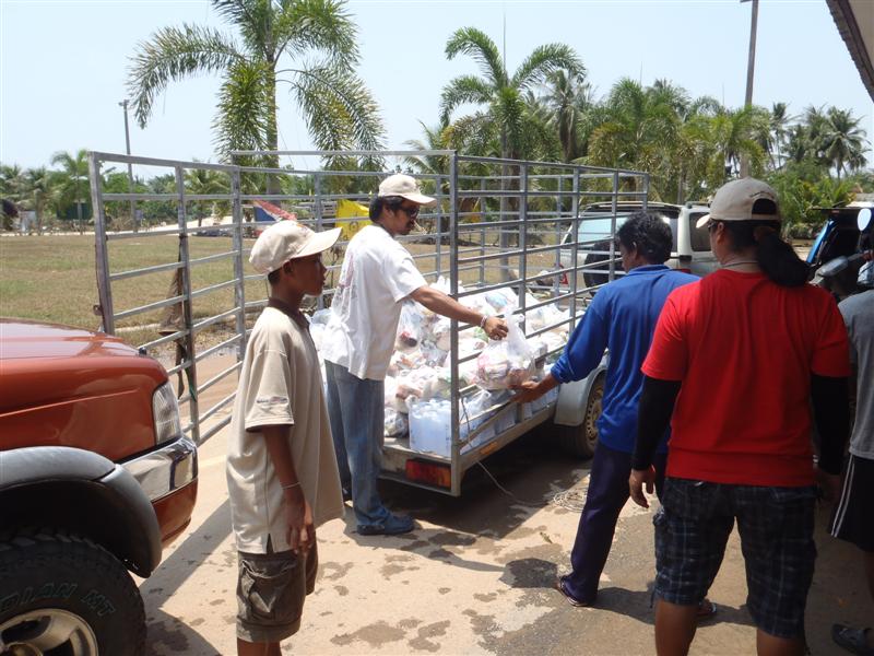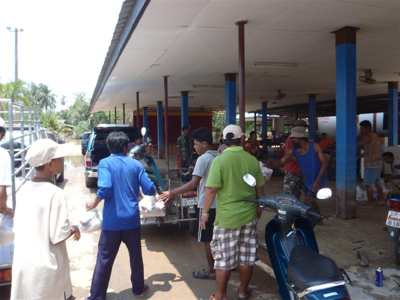 คือภาระกิจ นำข้าวกล่อง จำนวน 2000 กล่อง แจกชาวบ้าน เนื่องจากชาวบ้านได้รับข้าวสาร อาหารแห้งไปแล้ว ไม่สามารถประกอบอาหารได้ เพราะไฟฟ้าไม่มี น้ำประปาไม่ไหล น้ำท่วมสูง อยู่บนชั้นสองได้ ไม่มีเตาฟืน คณะช่วยเหลือผู้ประสพภัยฯจึงประชุมกันว่า แจกข้าวกล่องไปก่อน จนกว่าจะเข้าสู่ สภาวะปกติหรือน้ำลดลงมา โดยมี ตัวแทนจาก มูลนิธิชัยพัฒนา สนับสนุนข้าวสาร มูลนิธิเพื่อนพึ่งภาฯ สนับสนุน งบ ค่าปรุงอาหาร วันละ 3 หมื่นบาท โดยมีน้ำดื่มอีกส่วนหนึ่ง โดยกำนังขอแรงกลุ่มแม่บ้านมาช่วยปรุงอาหาร