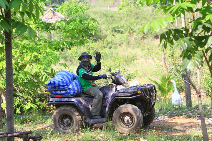 น้าอุ้ยกัปตันขับเครื่องบินพานิชย์ 747 ขับ ATV มาเยี่ยมอาเจ็กทดสอบการขับแทรคเตอร์ดูว่าจะแตกต่างอย่างไรค่ะ