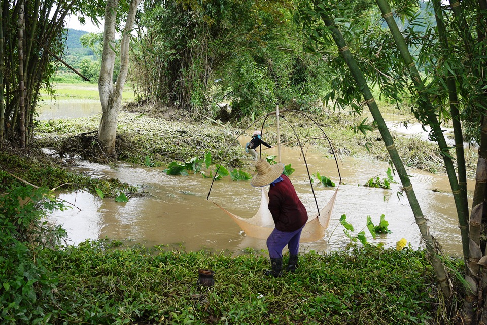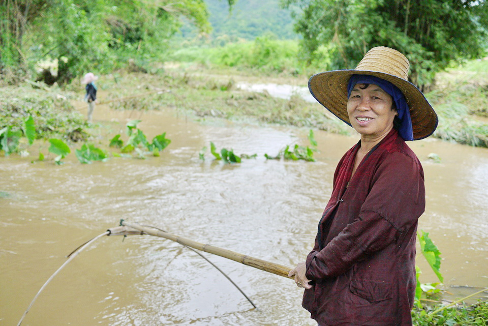 แม่บัวไม่รอช้า คว้าอาวุธประจำตัว ตรงดิ่งไปที่แม่น้ำ ตกหาปลาในบัดดล