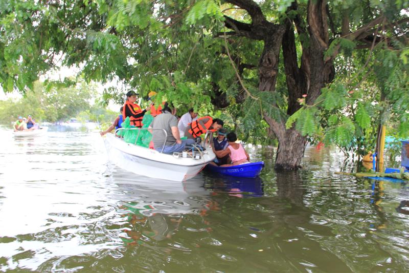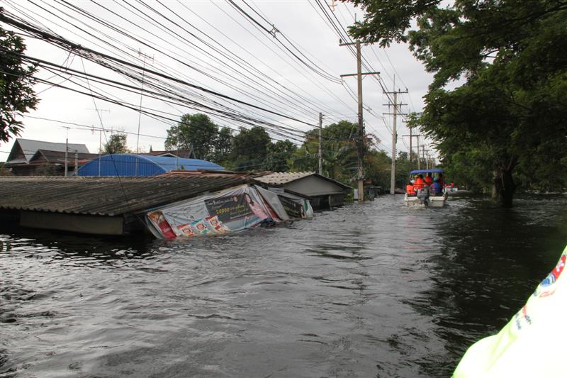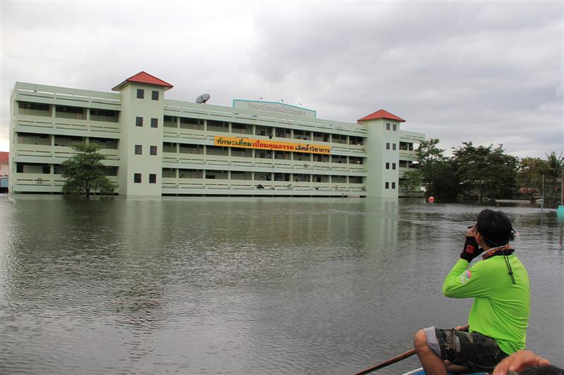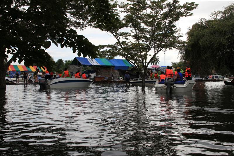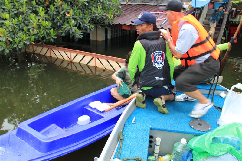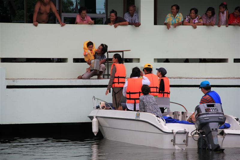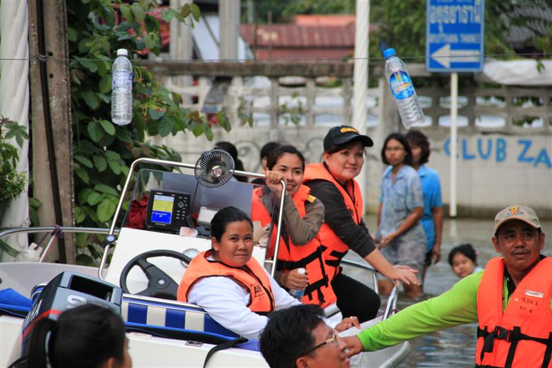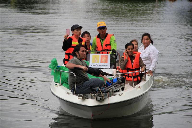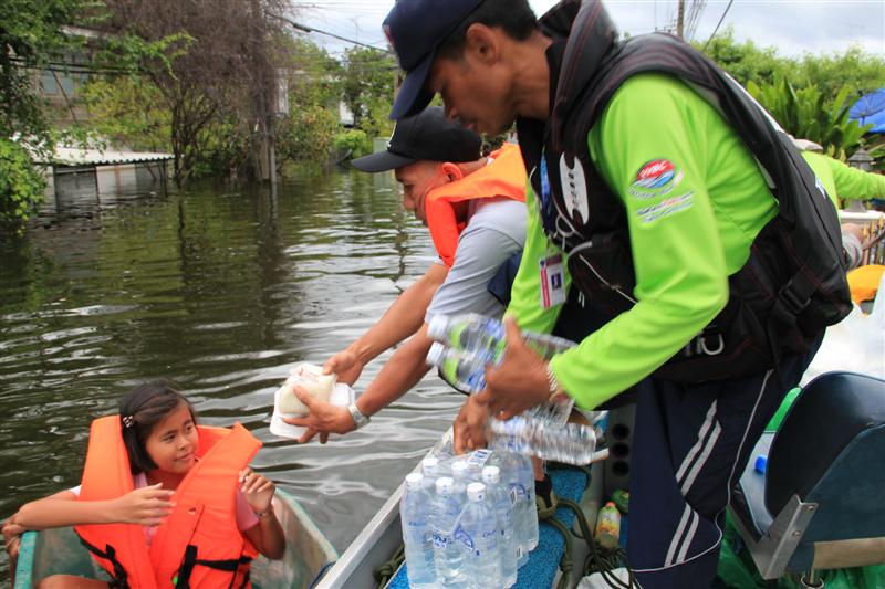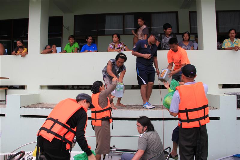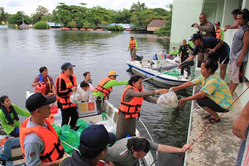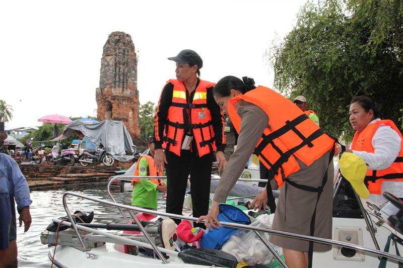 นำอาหารกล่องและน้ำดื่ม จากครัวพระราชทานฯแจกจ่ายที่เกาะเมืองอยุธยา