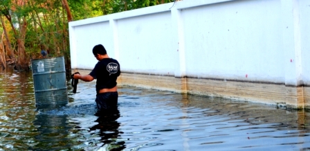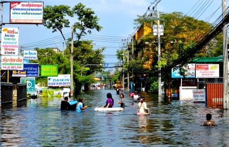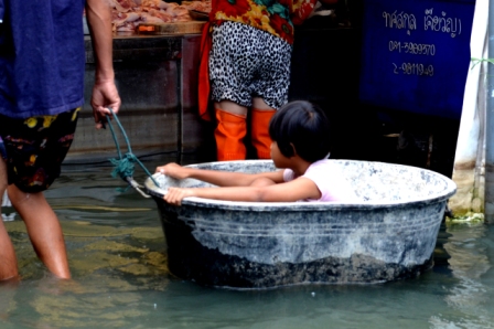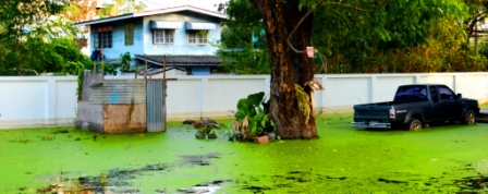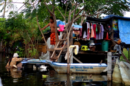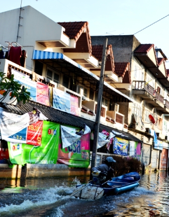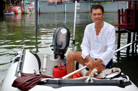 ลำบากเหมือนกัน น้าตุ้ม ต้องขับเรือไป 5 กม.ไปตามถนนแบบนี้ ใช้เวลา 1.5-2 ชม. จอดและล็อกกุญแจเรือ จ้างคนเฝ้าเรือ ใส่กางเกงกันน้ำ ลุยน้ำไปบนฝั่ง แล้วต่อรถ TAXI ขึ้นทางด่วนอีก 20 กม. จึงจะถึงที่ทำงาน แต่สนุกตรงที่รับคน และลากเรือพายไปด้วยทุกเที่ยวเลย